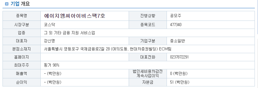 현대차스팩7호 HMCIB스팩7호 상장일 체크