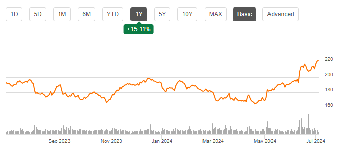 52주 최고/최저 | 221.55 / 164.08 달러 |