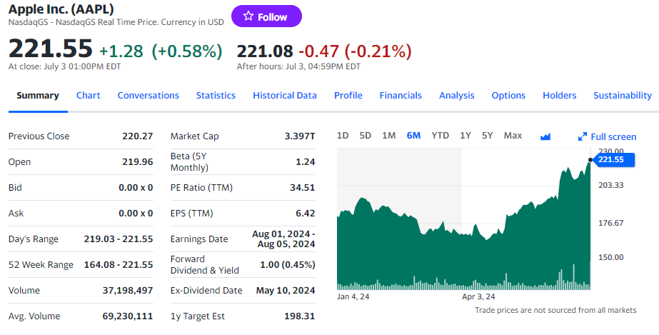 애플은 안정적인 성장과 꾸준한 배당 지급으로 장기 투자자들에게 매력적인 종목이 될 수 있습니다. 다만, 현재의 높은 밸류에이션을 고려할 때 단기적인 관점에서는 신중한 접근이 필요해 보입니다.